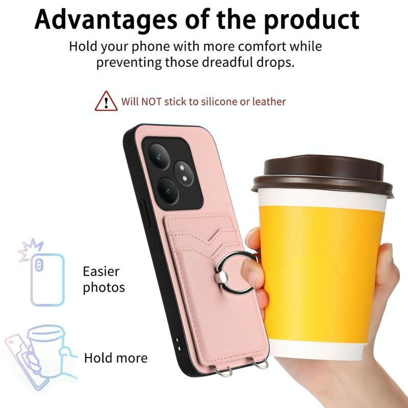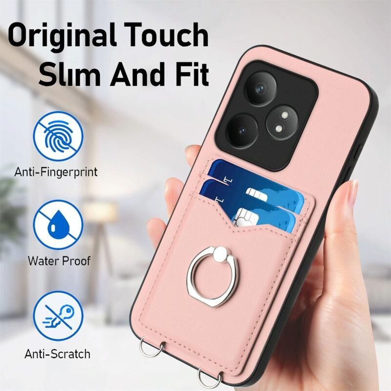 Για Realme GT Neo6 / GT 6T 5G R20 Crossbody σχοινί δαχτυλίδι κάρτας κάτοχος υπόθεση τηλεφώνου (ροζ)