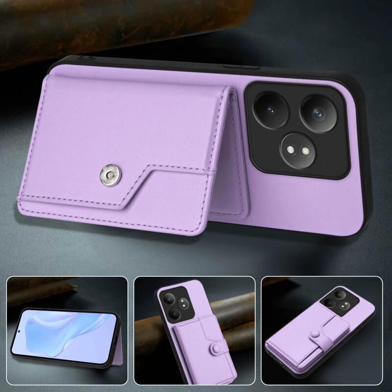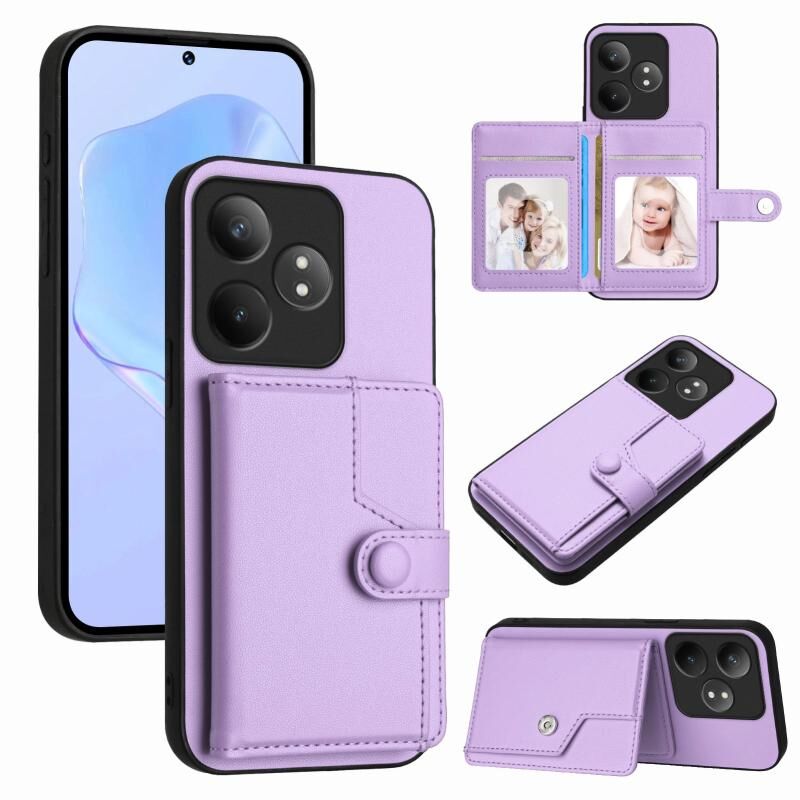 For Realme GT Neo6 SE Button Card Bag RFID Anti-theft Phone Case(Purple)
