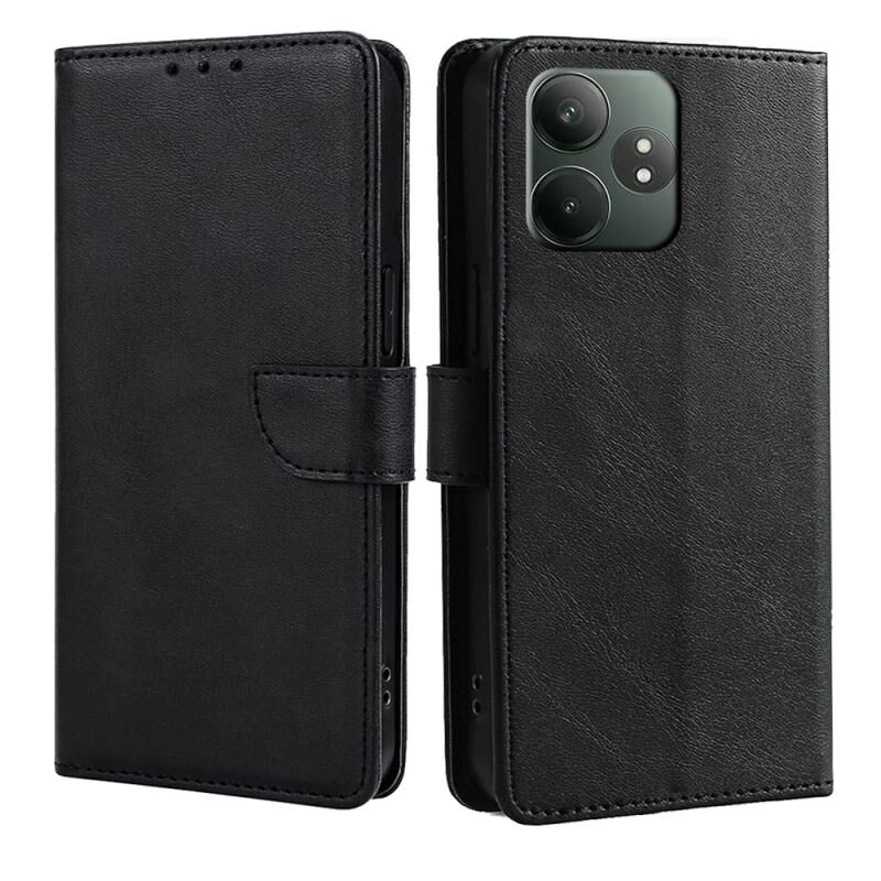 Για Realme GT Neo6 SE Calf υφή Πόρπη Flip δέρμα τηλέφωνο υπόθεση (Μαύρο)
