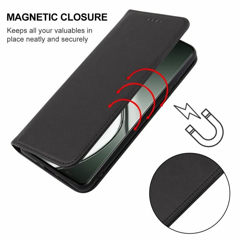 Για Realme GT Neo6 SE Μαγνητικό κλείσιμο δερμάτινη θήκη τηλεφώνου (Μαύρο)