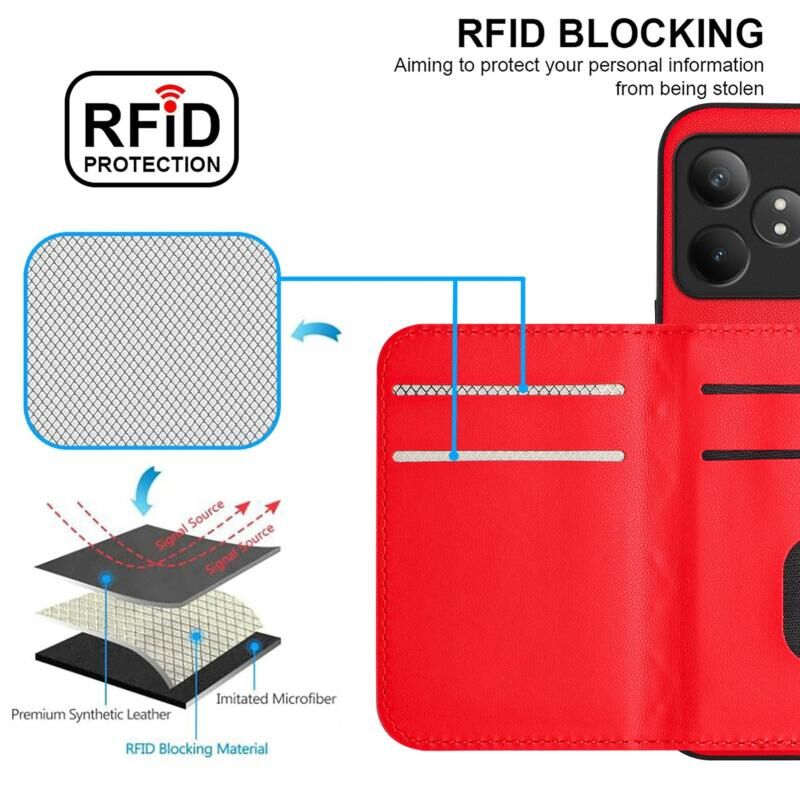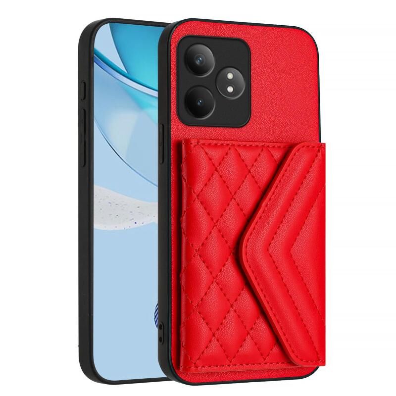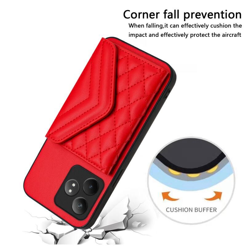 Για Realme GT Neo6 SE Rhombic υφή κάρτα τσάντα RFID υπόθεση τηλεφώνου με μακρύ κορδόνι (κόκκινο)