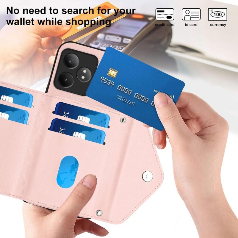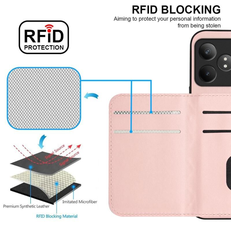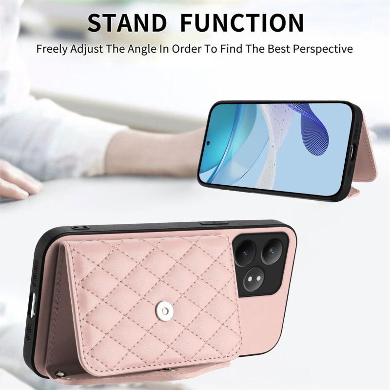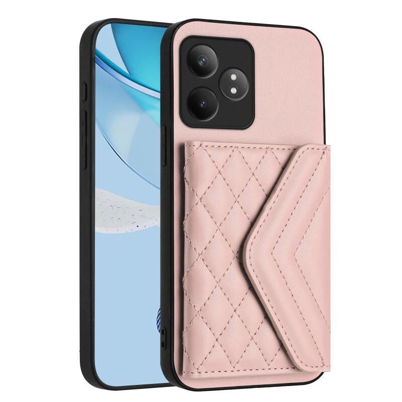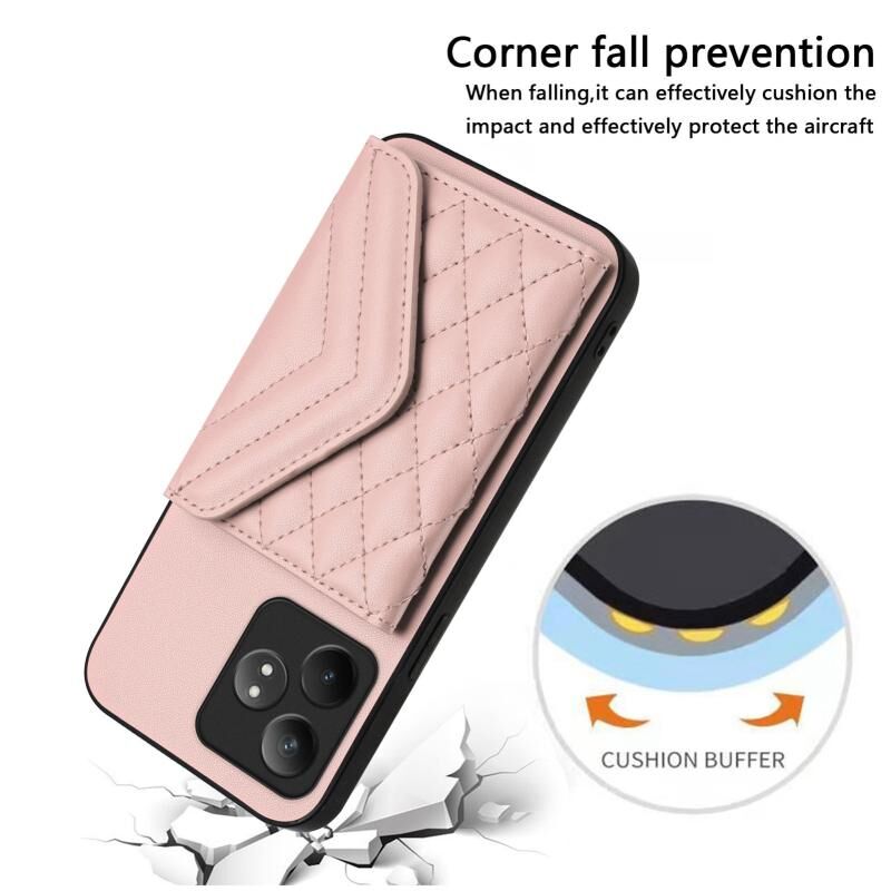 Για Realme GT Neo6 SE Rhombic υφή κάρτα τσάντα RFID υπόθεση τηλεφώνου με μακρύ κορδόνι (Rose Gold)