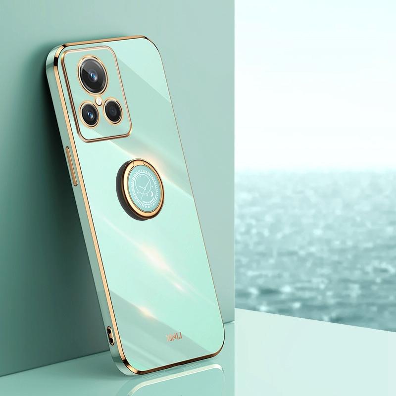 Θήκη τηλεφώνου Realme GT2 Explorer Master 5G XINLI με ευθεία άκρη, 6D ηλεκτρολυτική επίστρωση TPU με δακτύλιο στήριξης (Μέντα Πράσινο)