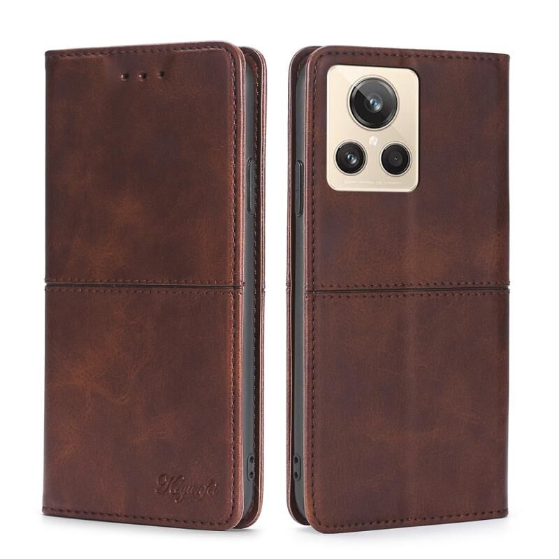 Για Realme GT2 Explorer Master Cow Texture μαγνητική υπόθεση τηλεφώνου από δέρμα (σκούρο καφέ)