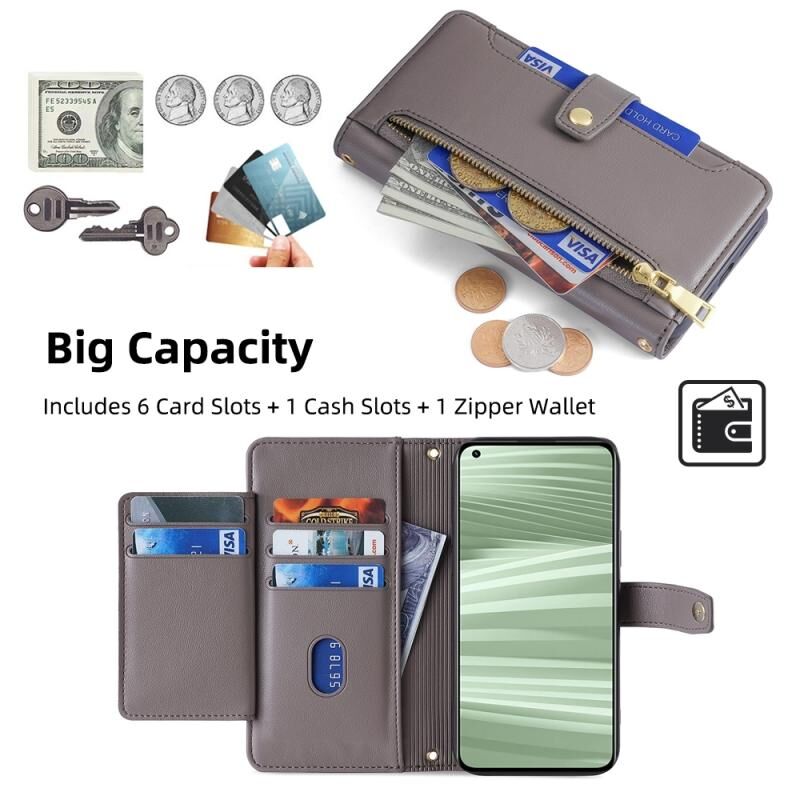 2. Λειτουργία πορτοφολιού πολλαπλών καρτών: Θήκες για κάρτες και διαμέρισμα με φερμουάρ για την αποθήκευση των πιστωτικών σας καρτών, μετρητών ή μικρών σημειώσεων για καθημερινή χρήση.