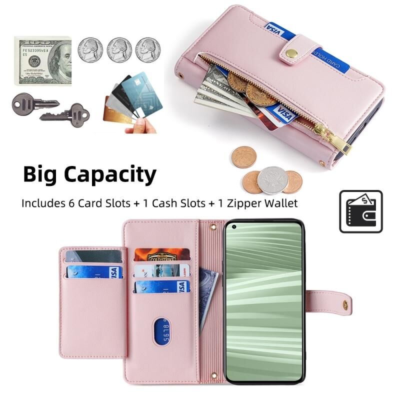 2. Λειτουργία πορτοφολιού πολλαπλών καρτών: Θήκες για κάρτες και διαμέρισμα με φερμουάρ για την αποθήκευση των πιστωτικών σας καρτών, μετρητών ή μικρών σημειώσεων για καθημερινή χρήση.