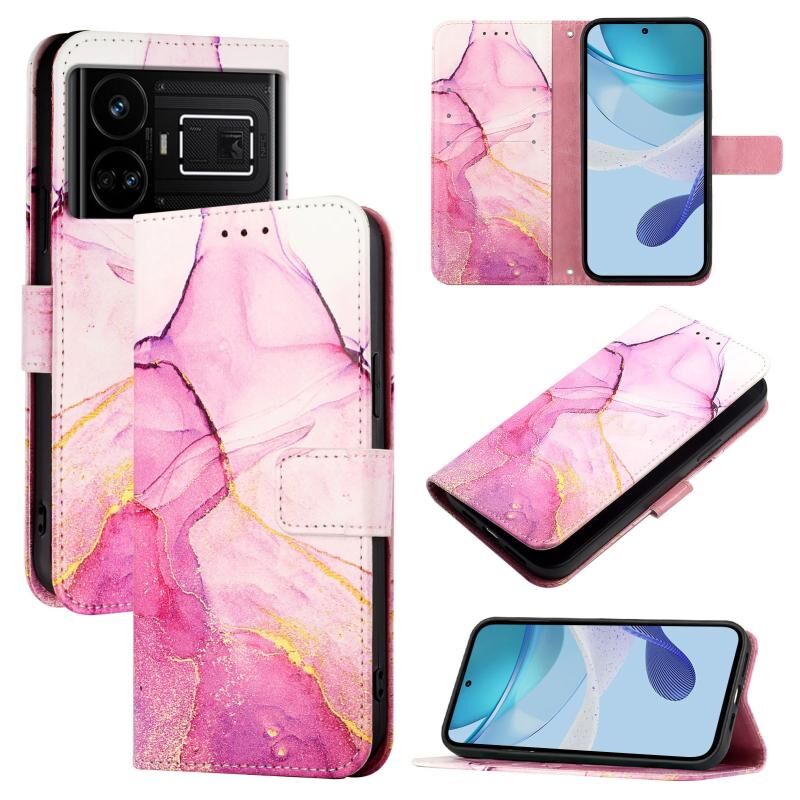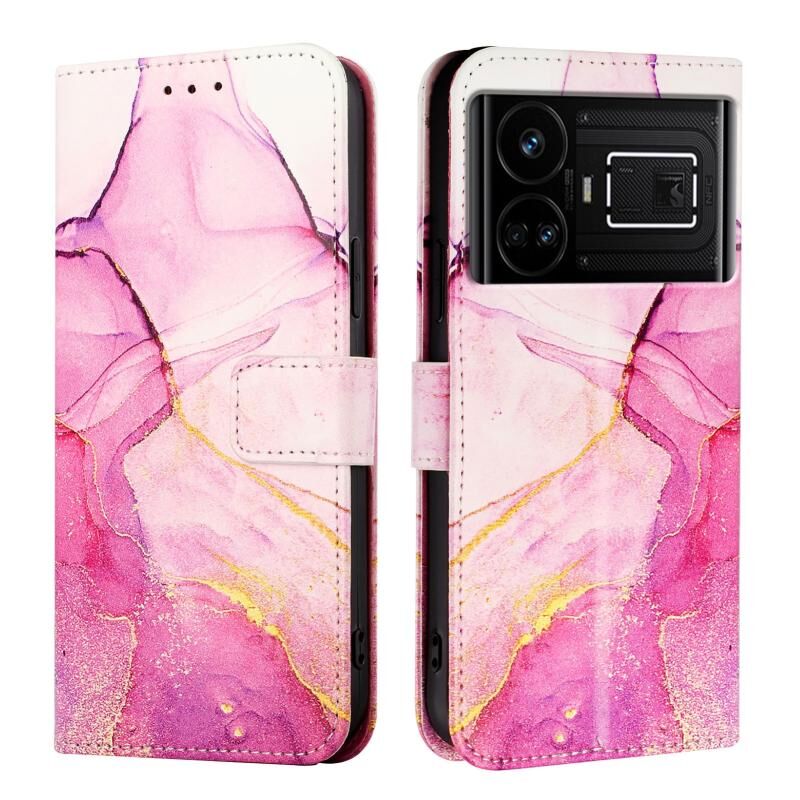 For Realme GT5 5G 204W / Realme GT5 5G PT003 Marble Pattern Flip Leather Phone Case(Pink Purple Gold)