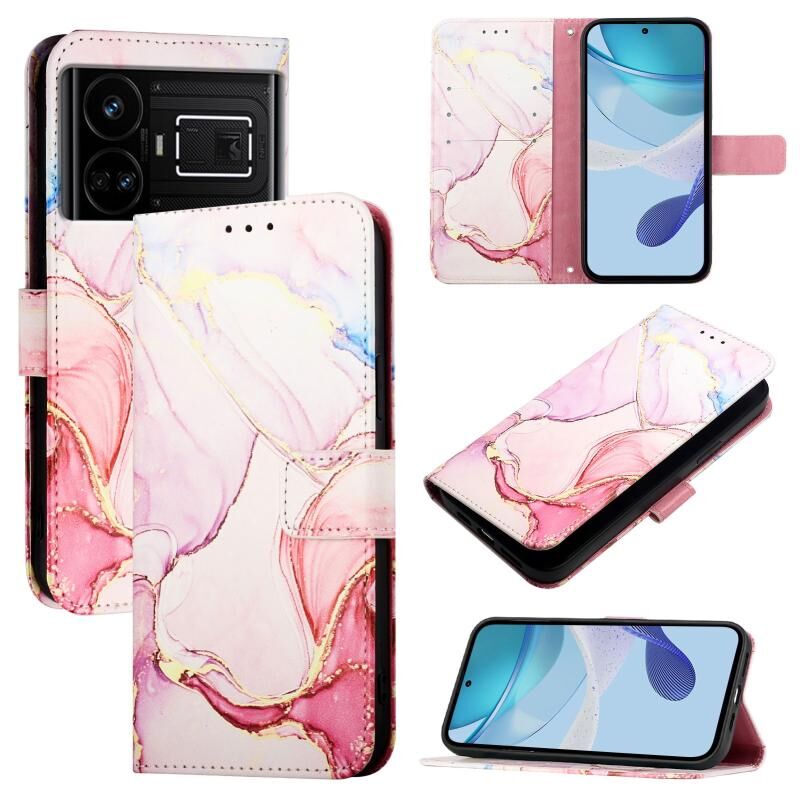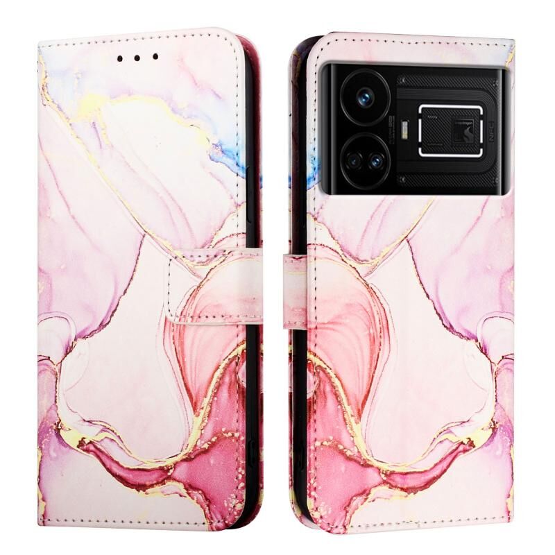 For Realme GT5 5G 204W / Realme GT5 5G PT003 Marble Pattern Flip Leather Phone Case(Rose Gold)