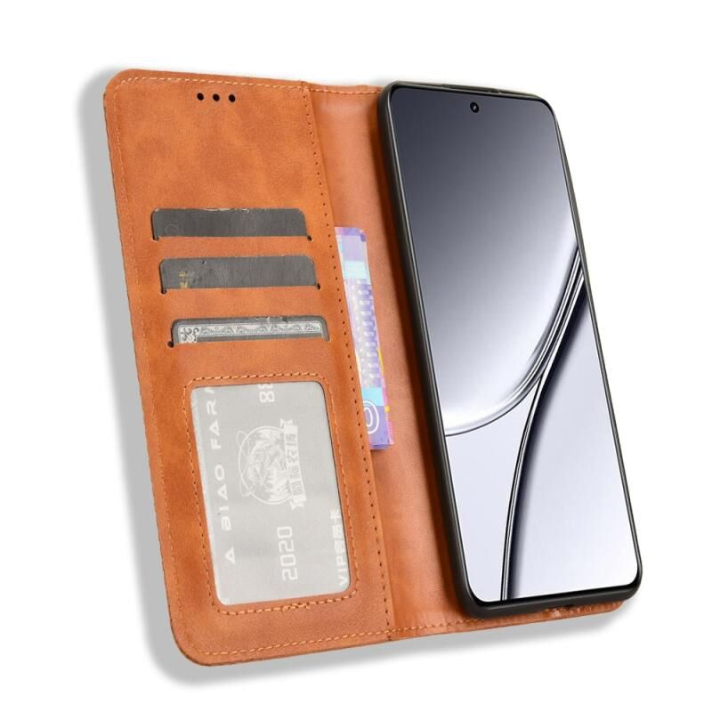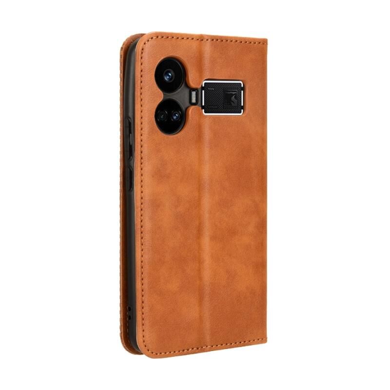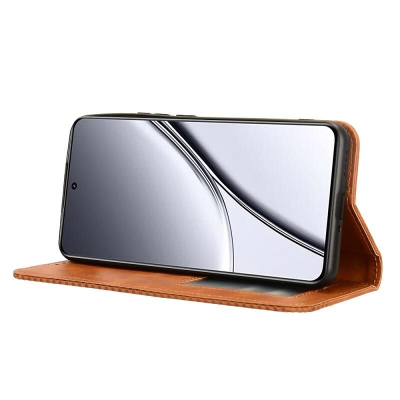For Realme GT5 5G Magnetic Buckle Retro Texture Leather Phone Case(Brown)