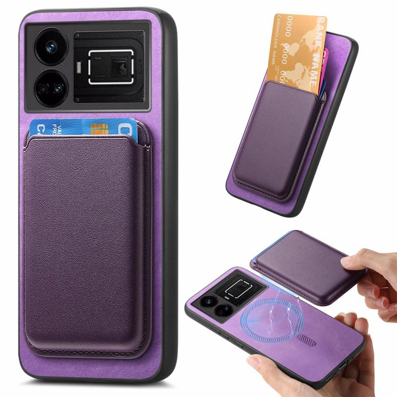 For Realme GT5 5G Retro Magsafe Card Bag PU Back Cover Phone Case(Purple)