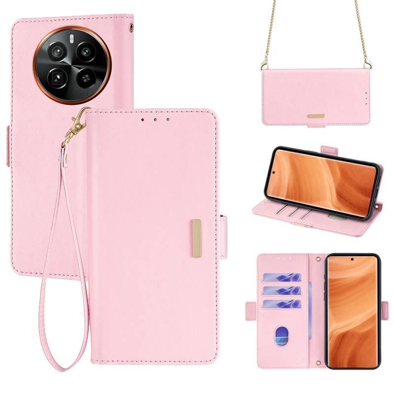 Θήκη τηλεφώνου Realme GT5 Pro 5G με αλυσίδα και δέρμα για λαιμό (Μαύρο)