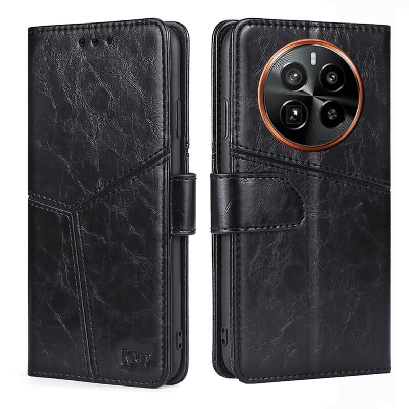 Για Realme GT5 Pro 5G γεωμετρική ραφή δερμάτινη θήκη τηλεφώνου (μαύρο)