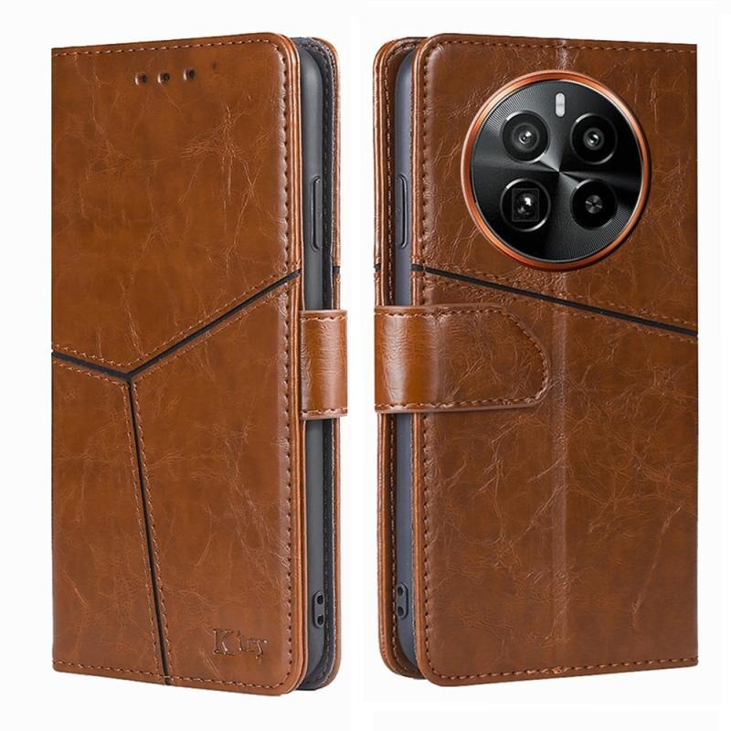 Για Realme GT5 Pro 5G γεωμετρική ραφή δερμάτινη θήκη τηλεφώνου (ανοιχτό καφέ)