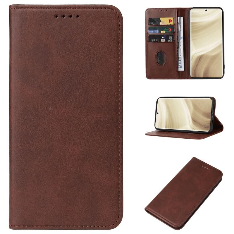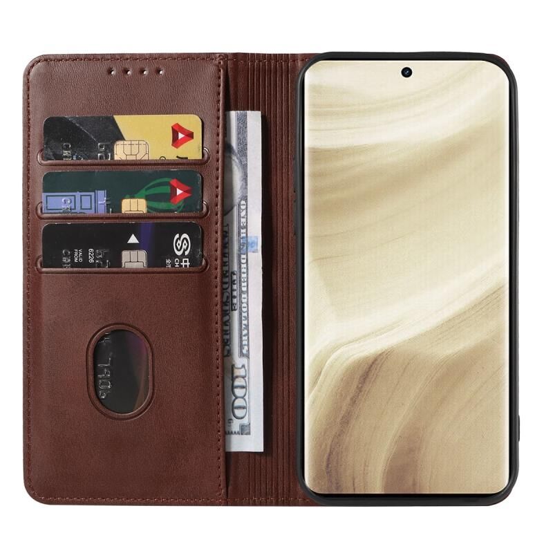 Για Realme GT5 Pro Μαγνητικό κλείσιμο δερμάτινη θήκη τηλεφώνου (καφέ)