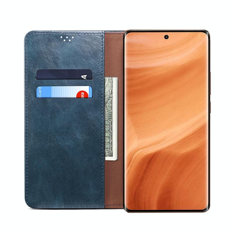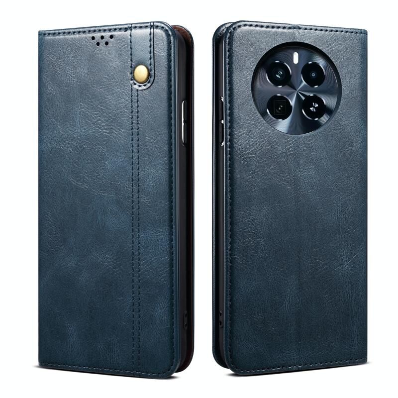 Θήκη τηλεφώνου από δέρμα με υφή Crazy Horse και κερί λαδιού για Realme GT5 Pro (Μπλε)