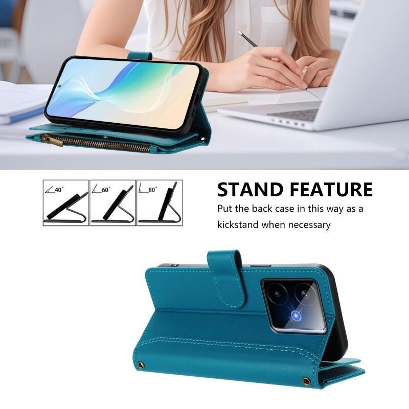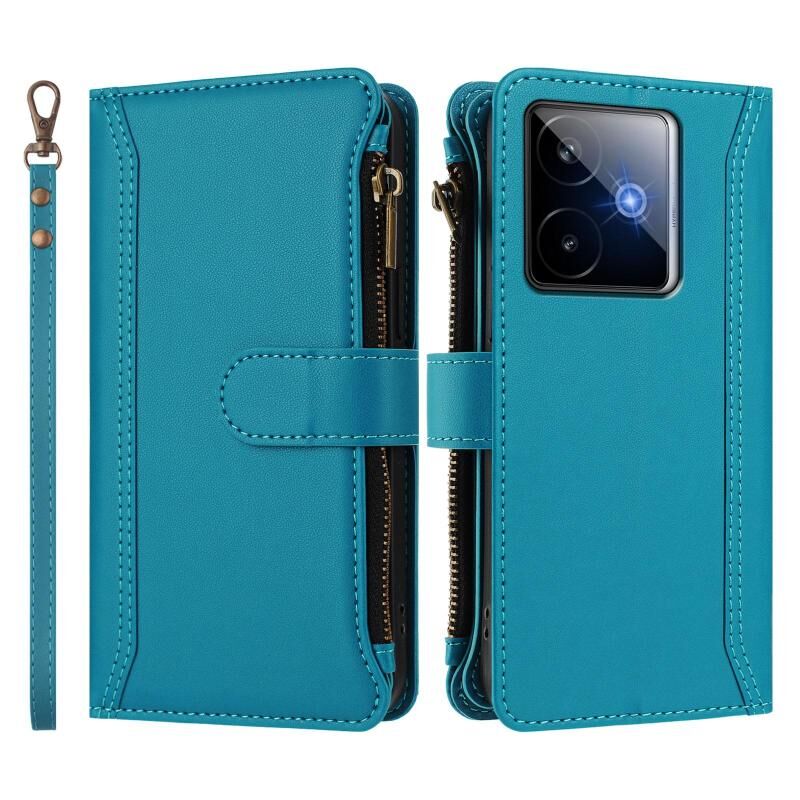For Realme GT7 Magnetic Closure 9 Card Slots Zipper Leather Case with Hand Strap(Turquoise)