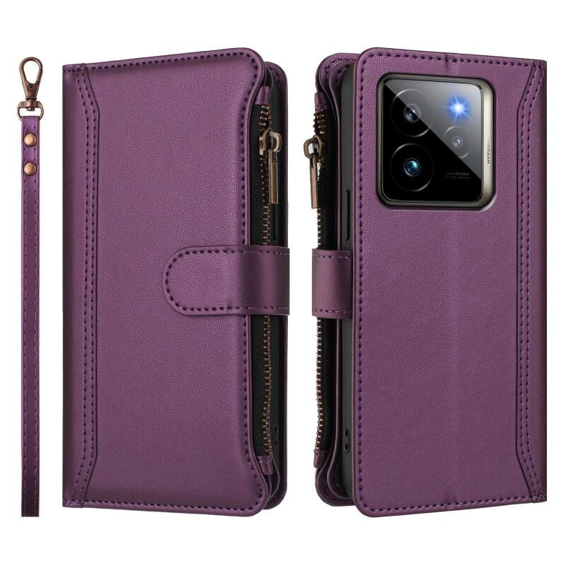 For Realme GT7 Pro 5G / GT7 Pro Racing Magnetic Closure 9 Card Slots Zipper Leather Case with Hand Strap(Purple)