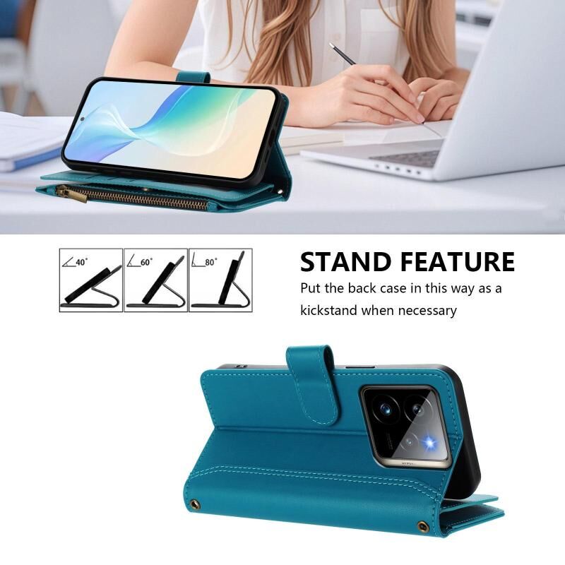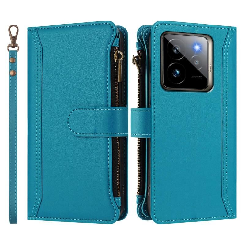 For Realme GT7 Pro 5G / GT7 Pro Racing Magnetic Closure 9 Card Slots Zipper Leather Case with Hand Strap(Turquoise)