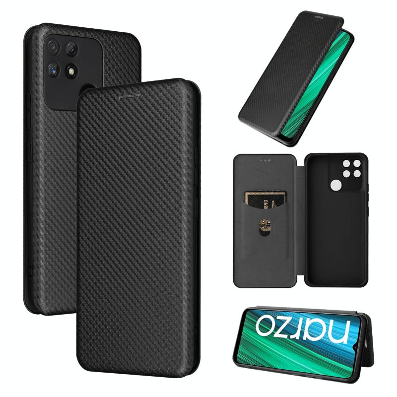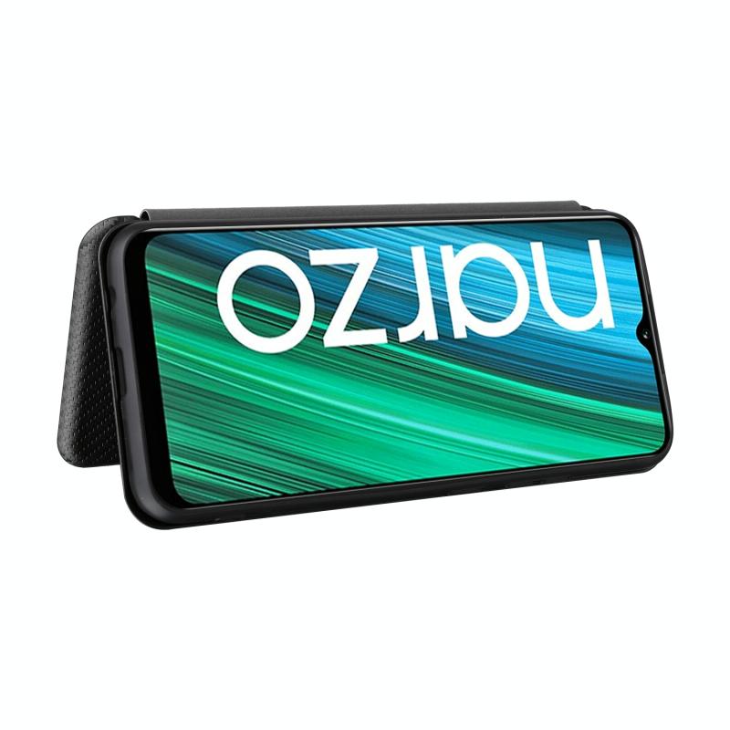 For Realme Narzo 50A Carbon Fiber Texture Flip Leather Phone Case(Black)