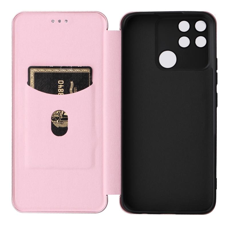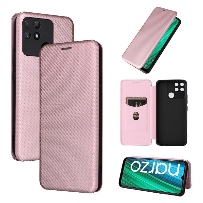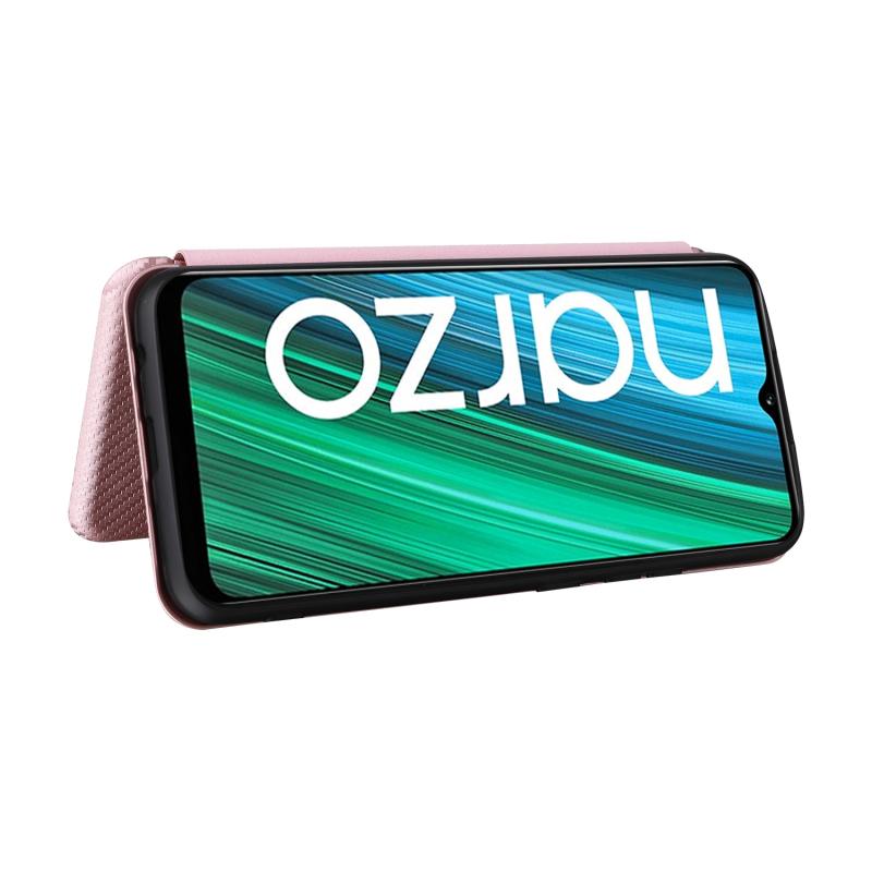 For Realme Narzo 50A Carbon Fiber Texture Flip Leather Phone Case(Pink)