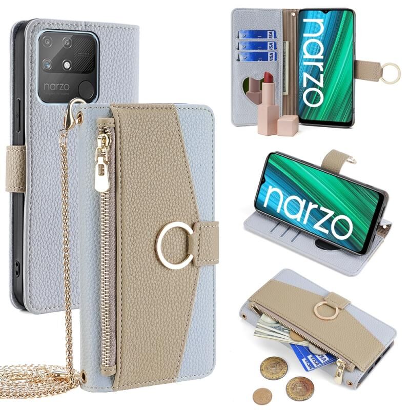For Realme Narzo 50A Crossbody Litchi Texture Leather Phone Case(Blue)