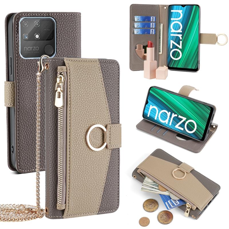 For Realme Narzo 50A Crossbody Litchi Texture Leather Phone Case(Grey)