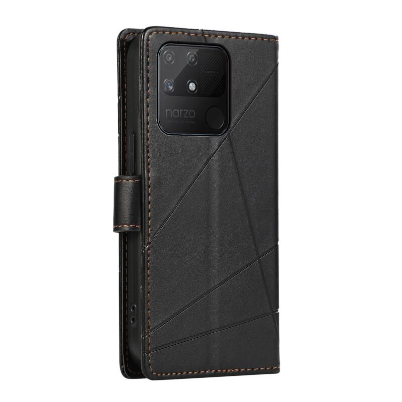 For Realme Narzo 50A PU Genuine Leather Texture Embossed Line Phone Case(Black)