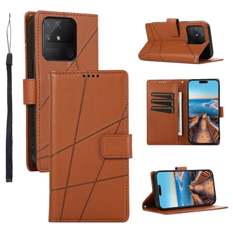 For Realme Narzo 50A PU Genuine Leather Texture Embossed Line Phone Case(Brown)