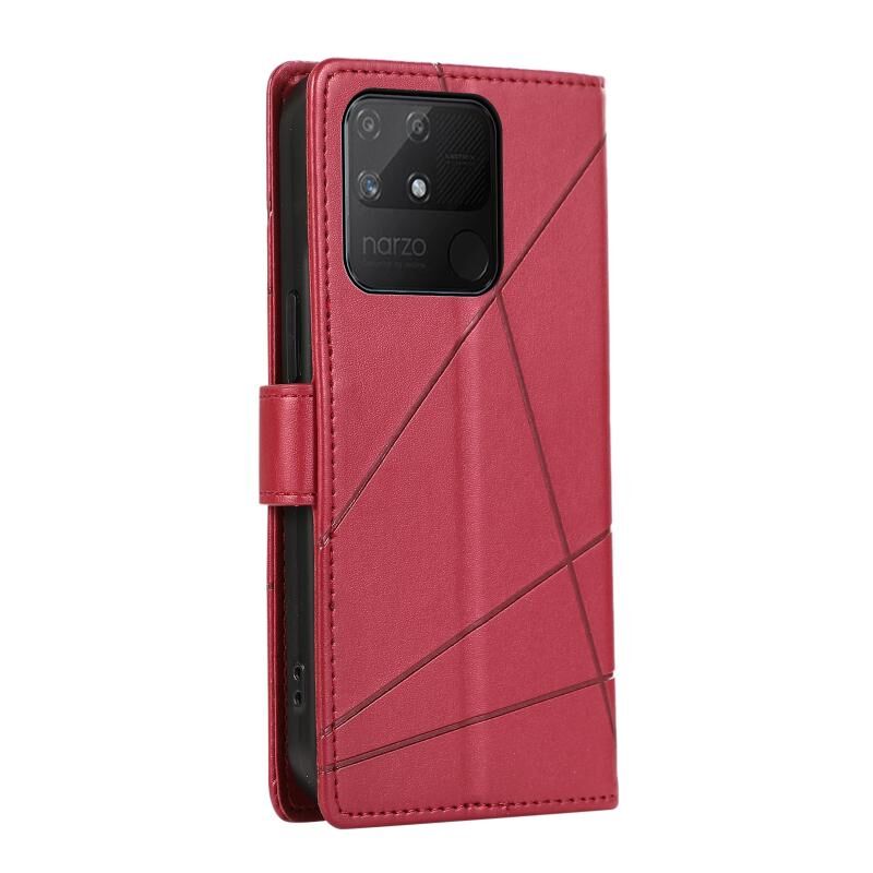 For Realme Narzo 50A PU Genuine Leather Texture Embossed Line Phone Case(Red)