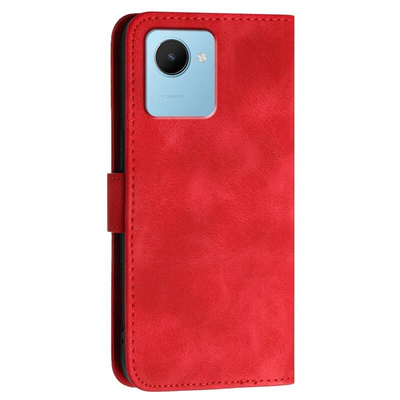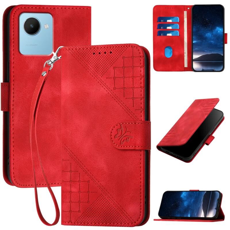 Θήκη τηλεφώνου δερμάτινη με ανάγλυφο σχέδιο πλέγματος και πεταλούδας για Realme Narzo 50i Prime, με κορδόνι (Κόκκινο)