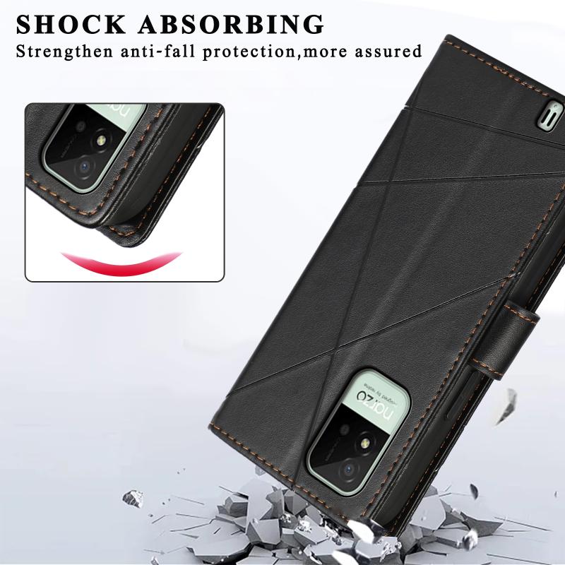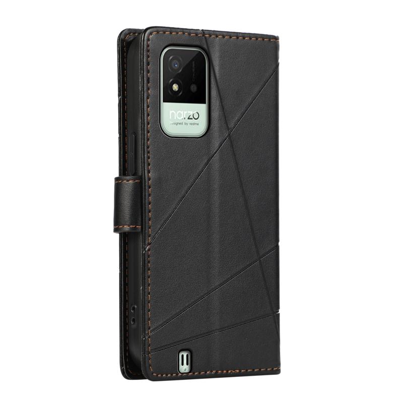 For Realme Narzo 50i PU Genuine Leather Texture Embossed Line Phone Case(Black)