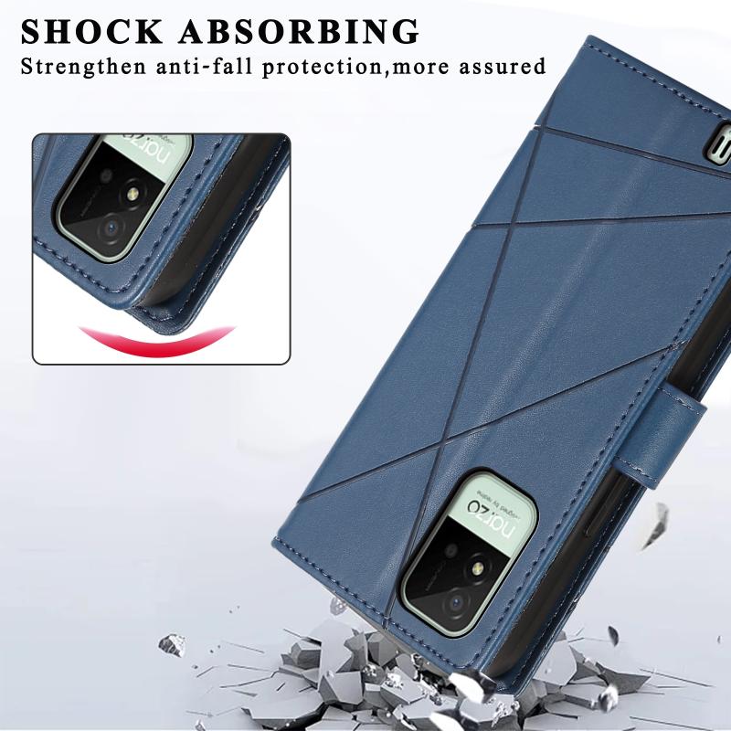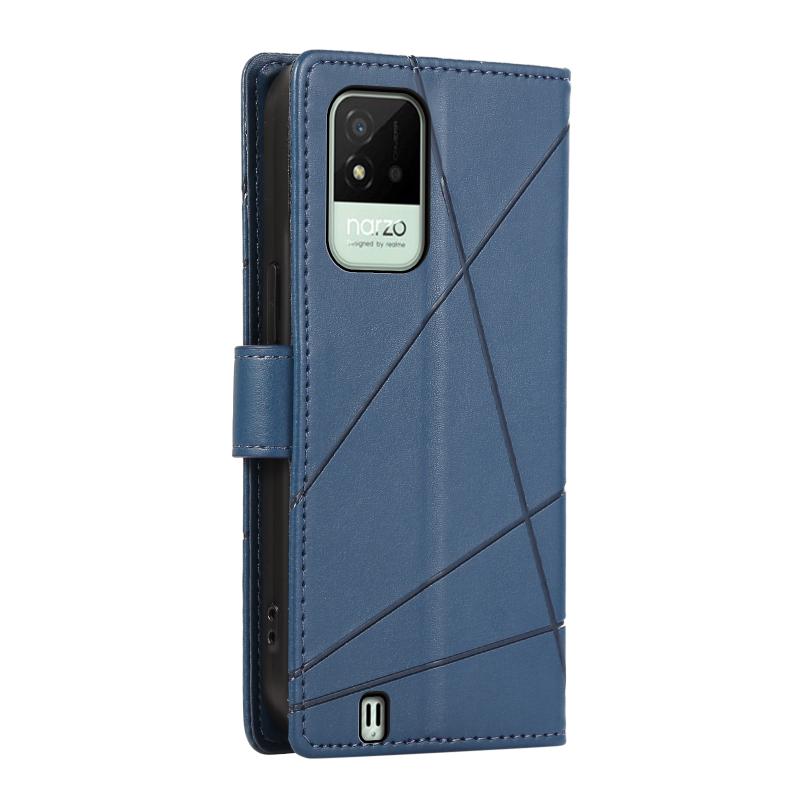 For Realme Narzo 50i PU Genuine Leather Texture Embossed Line Phone Case(Blue)