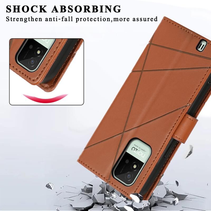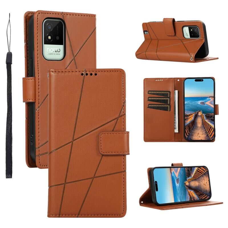 For Realme Narzo 50i PU Genuine Leather Texture Embossed Line Phone Case(Brown)