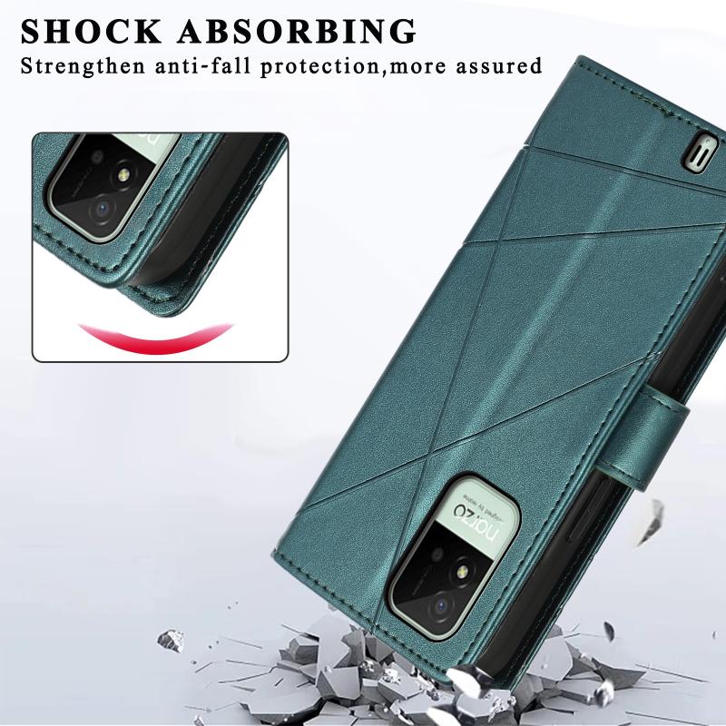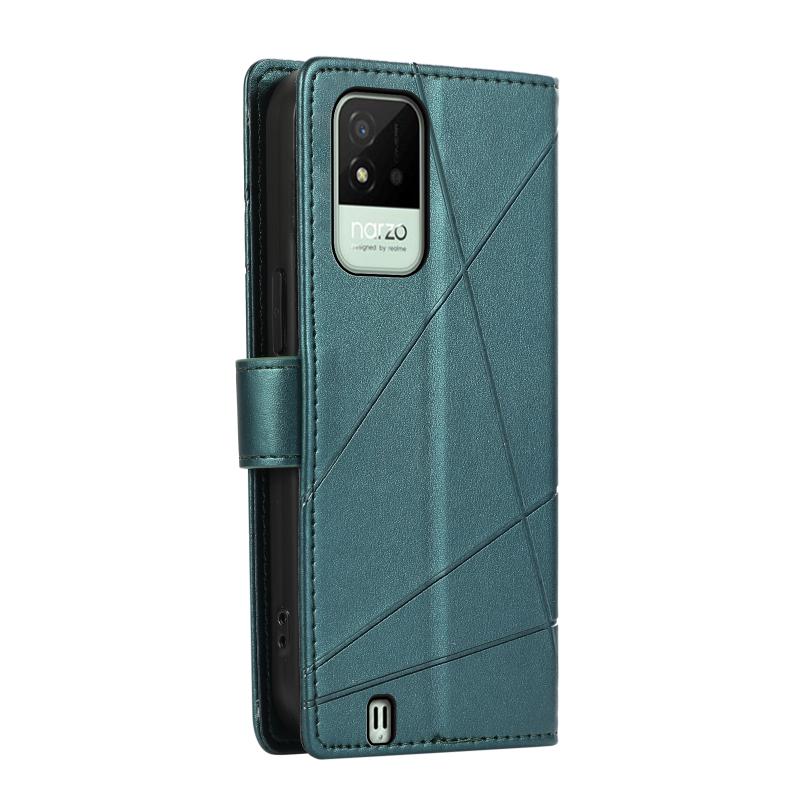 For Realme Narzo 50i PU Genuine Leather Texture Embossed Line Phone Case(Green)