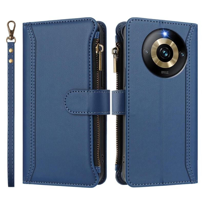 For Realme Narzo 60 Pro Global Magnetic Closure 9 Card Slots Zipper Leather Case with Hand Strap(Dark Blue)