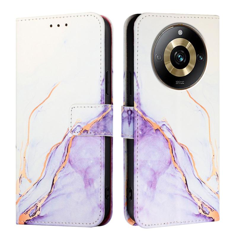 For Realme Narzo 60 Pro Global PT003 Marble Pattern Flip Leather Phone Case(White Purple)