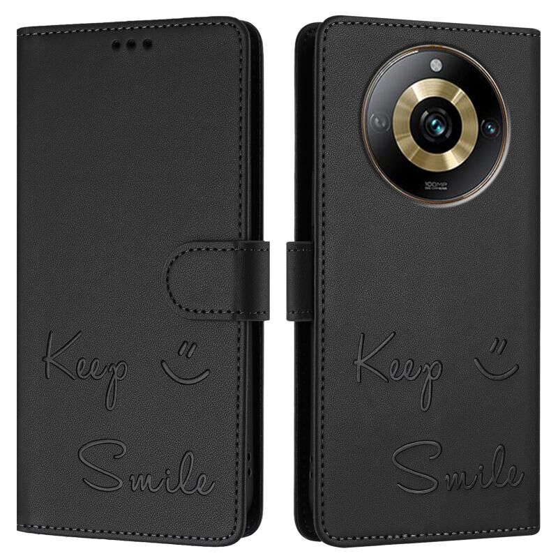 Για Realme Narzo 60 Pro Global Smile Ανάγλυφο RFID δερμάτινη θήκη τηλεφώνου (Μαύρο)