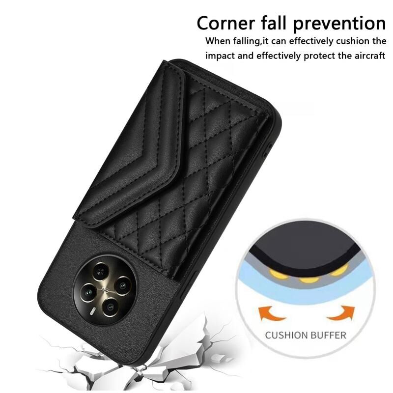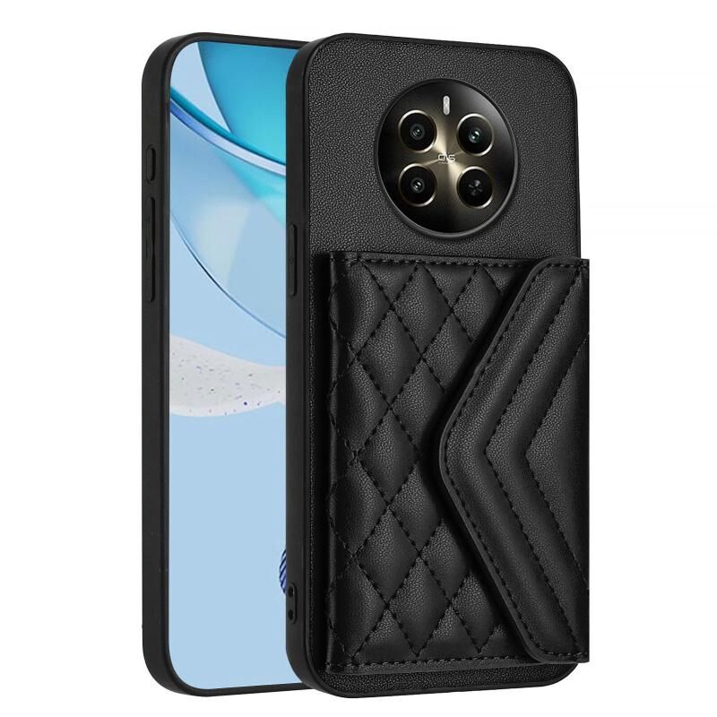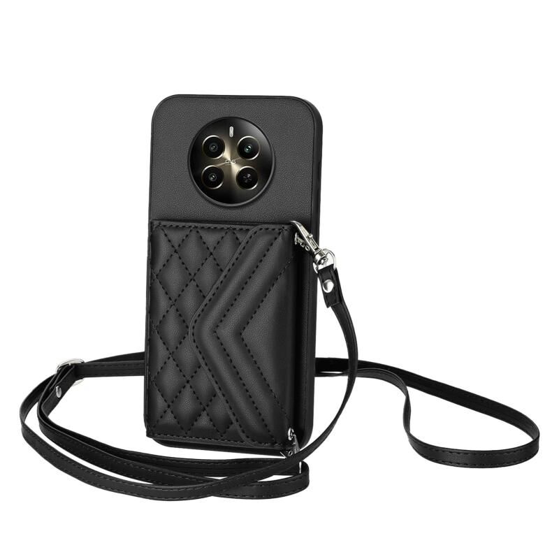 Για Realme Narzo 70 Pro 5G Ινδία Rhombic υφή κάρτα τσάντα RFID υπόθεση τηλεφώνου με μακρύ κορδόνι(Μαύρο)