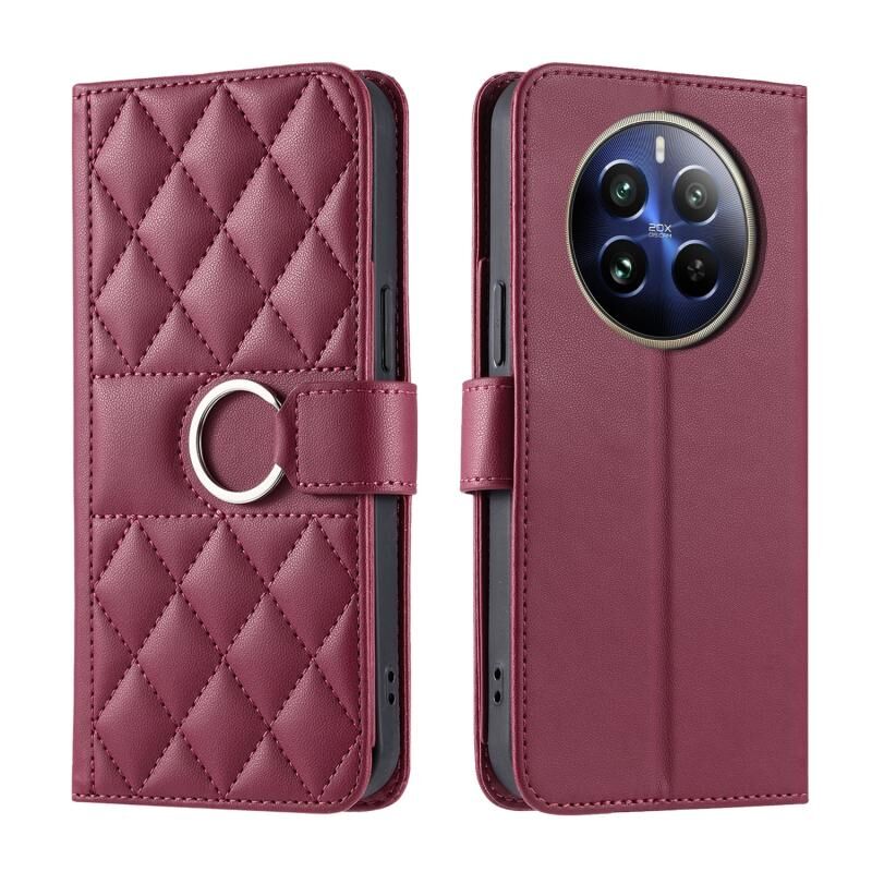 For Realme Narzo 70 Pro 5G India Ring Buckle Rhombic Leather Phone Case(Red)