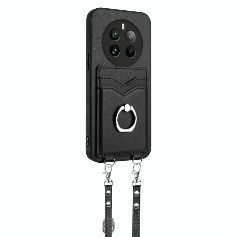 Για Realme Narzo 70 Pro 5G R20 Crossbody σχοινί δαχτυλίδι κάτοχος κάρτας υπόθεση τηλεφώνου (μαύρο)