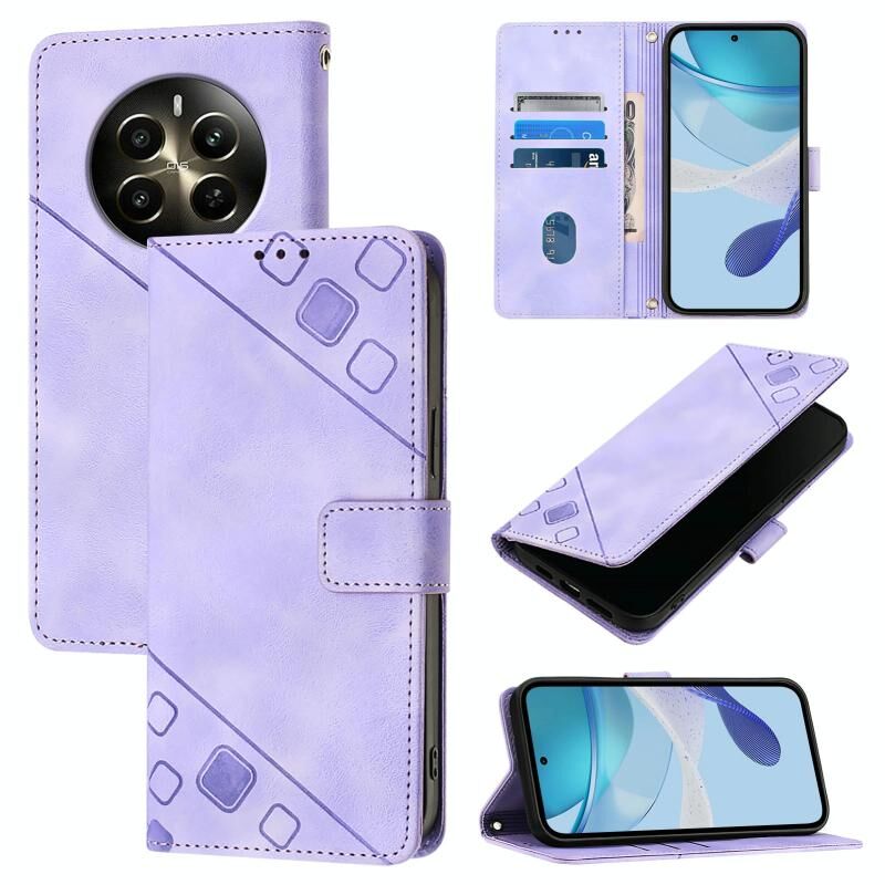 Για Realme Narzo 70 Pro Ινδία Skin-feel ανάγλυφη δερμάτινη θήκη τηλεφώνου (Light Purple)