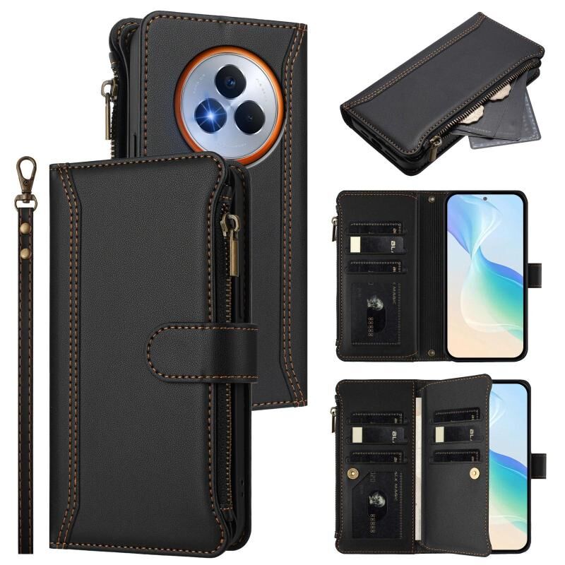 For Realme Narzo 80 Pro Magnetic Closure 9 Card Slots Zipper Leather Case with Hand Strap(Black)