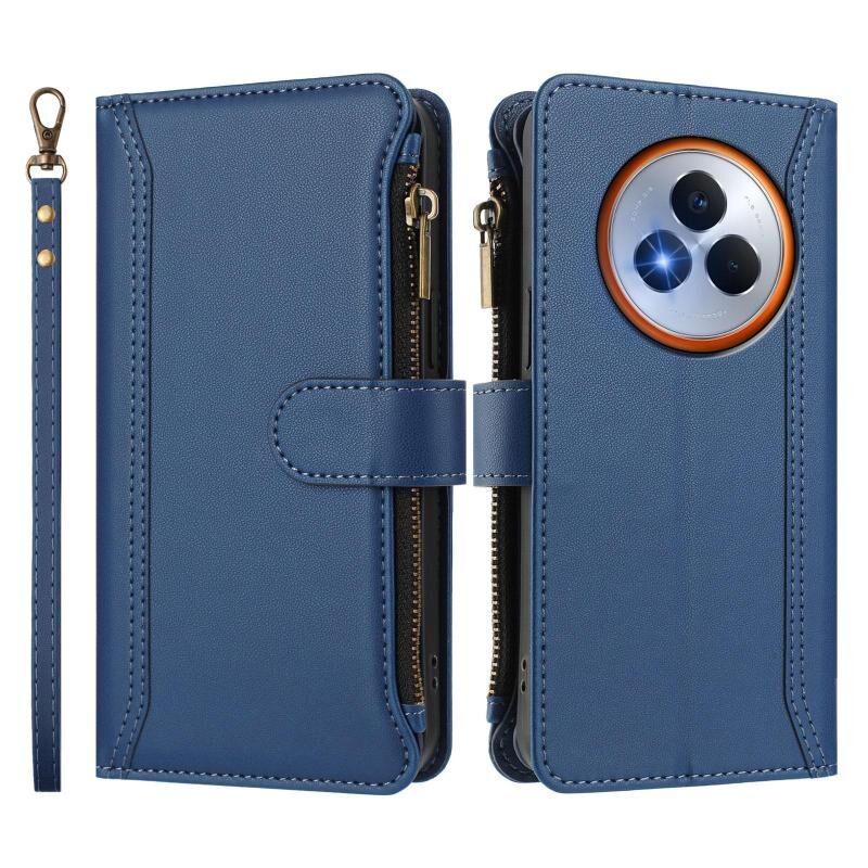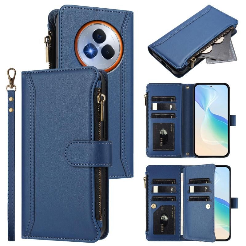 For Realme Narzo 80 Pro Magnetic Closure 9 Card Slots Zipper Leather Case with Hand Strap(Dark Blue)