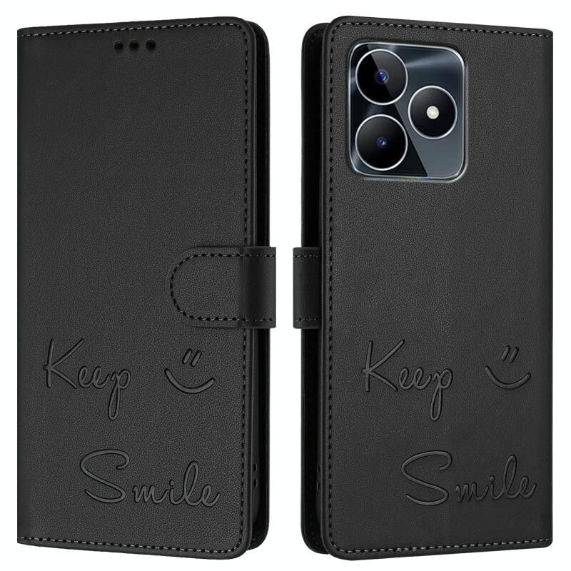 Για Realme Narzo N53 4G Global Smile Ανάγλυφο RFID δερμάτινη θήκη τηλεφώνου (Μαύρο)