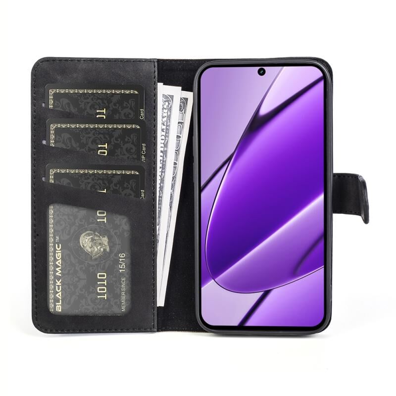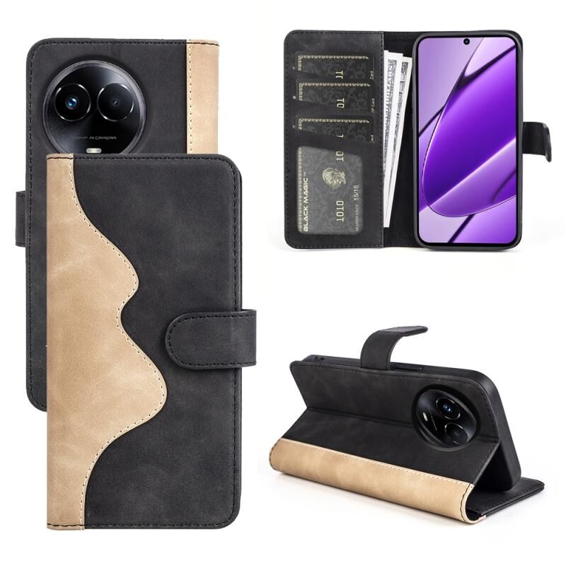 Θήκη τηλεφώνου από δέρμα με οριζόντιο άνοιγμα και ραφές για Realme Narzo N53 / C53 (Μαύρο)