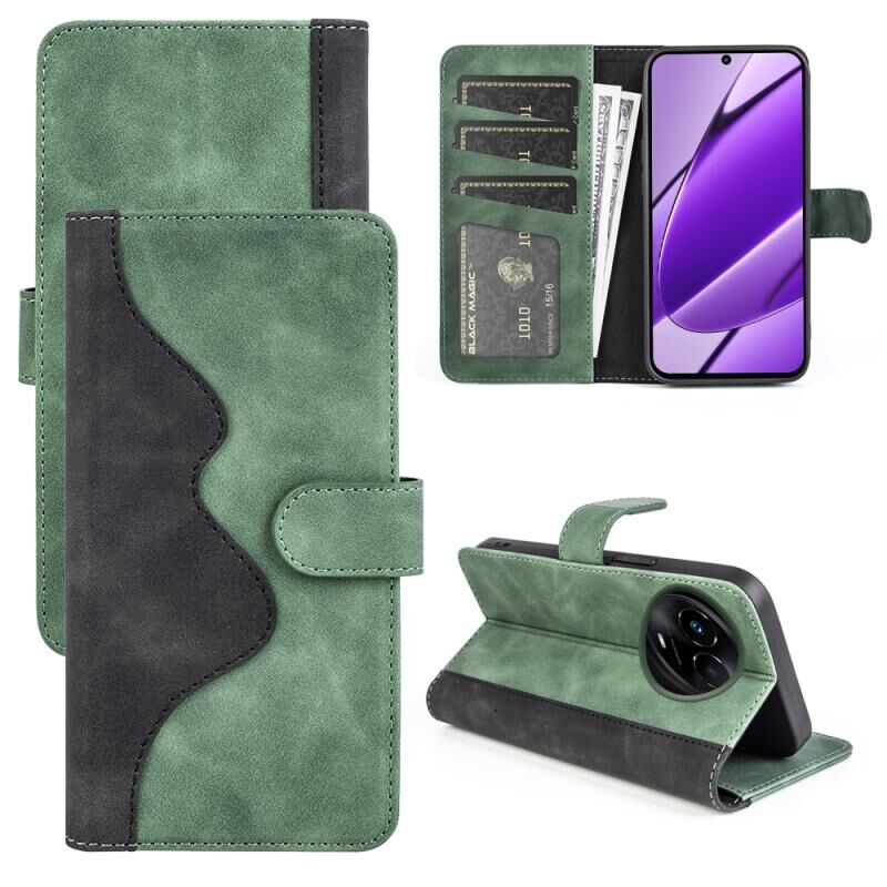 Θήκη τηλεφώνου από δέρμα με οριζόντιο άνοιγμα και ραφές για Realme Narzo N53 / C53 (Μαύρο)