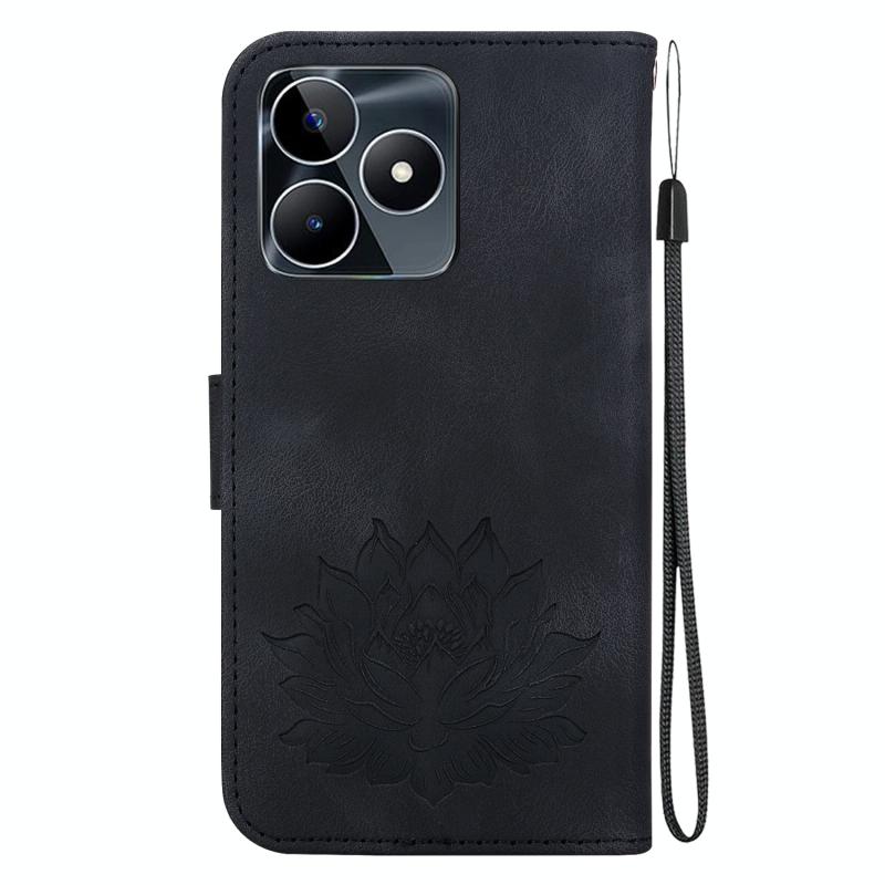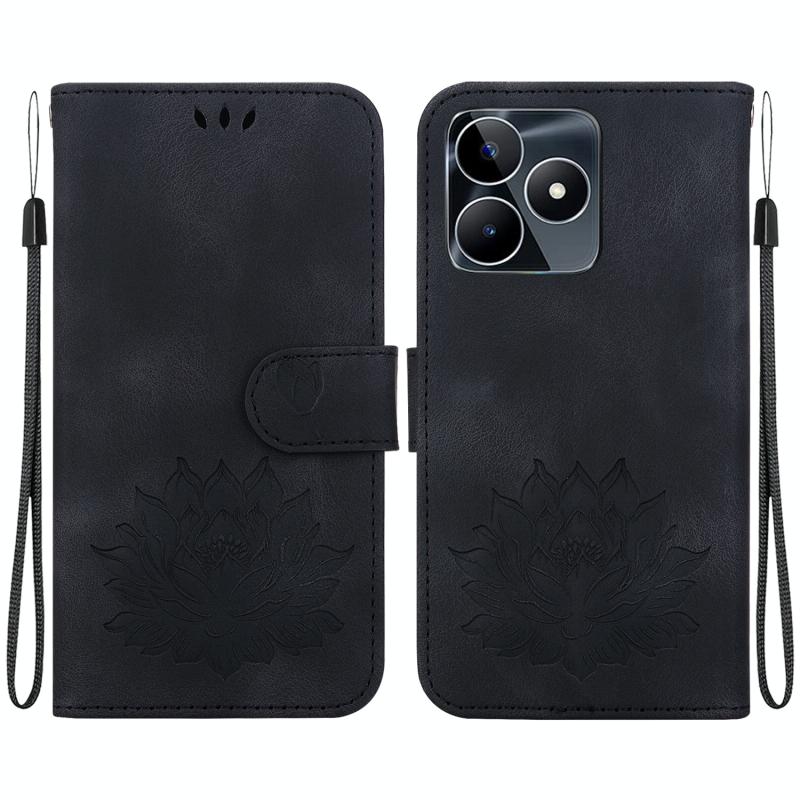 For Realme Narzo N53 / Note 50 Lotus Embossed Leather Phone Case(Black)