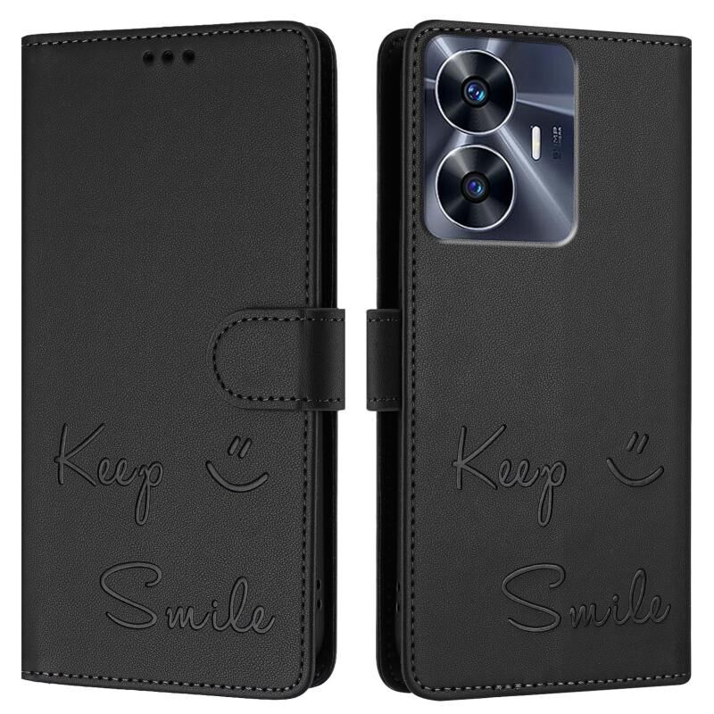 Για Realme Narzo N55 Χαμόγελο ανάγλυφο RFID δερμάτινη θήκη τηλεφώνου (Μαύρο)