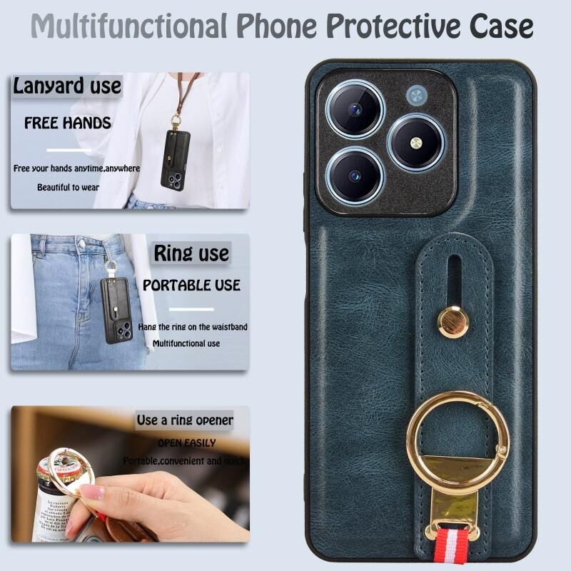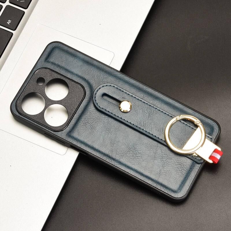 Για Realme Narzo N63 4G Wristband δέρμα πίσω υπόθεση τηλεφώνου (μπλε)