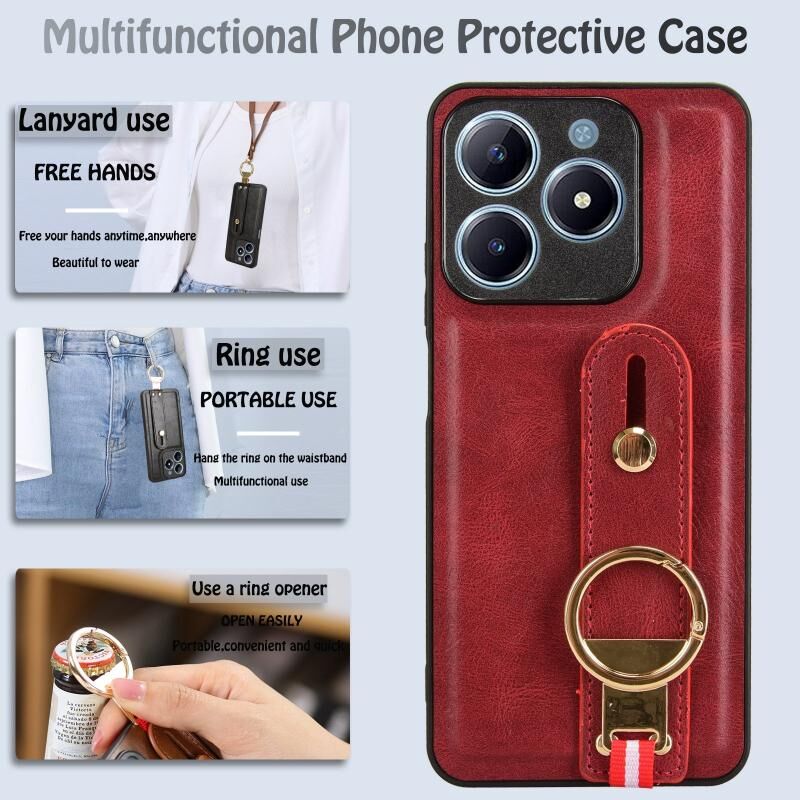 Για Realme Narzo N63 4G Wristband δερμάτινη πίσω θήκη τηλεφώνου (κόκκινο)